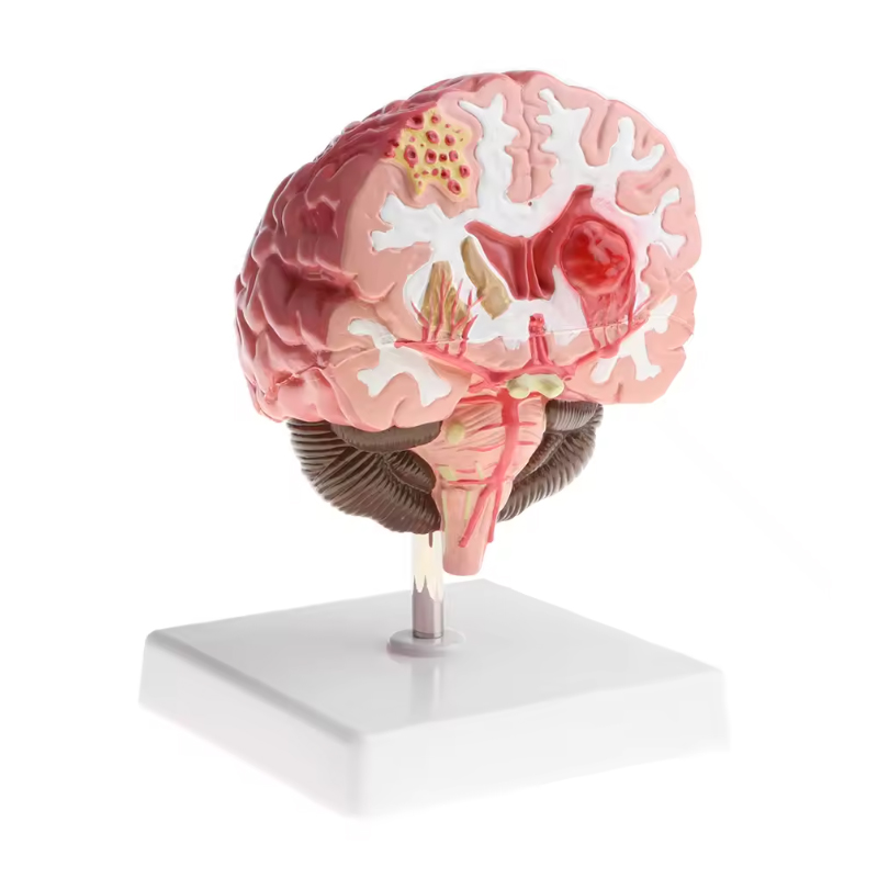 Model ľudského mozgu s ochoreniami ciev, napr. aneuryzmy, mozgová príhoda, mozgový angióm.