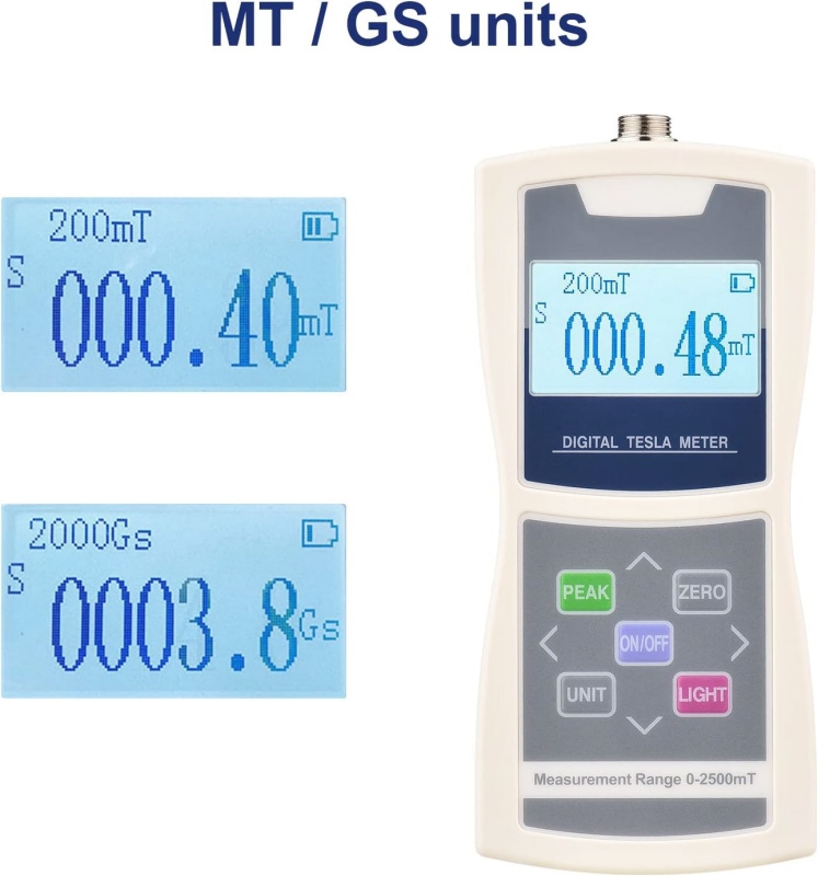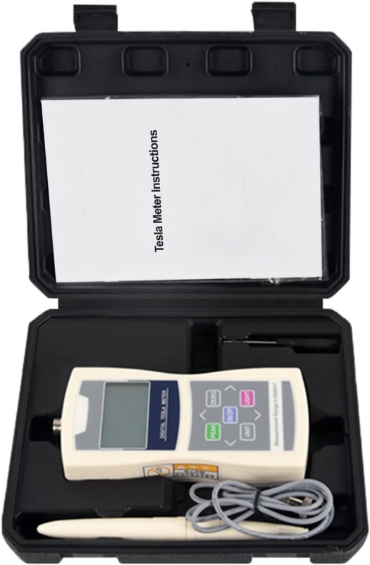 Tesla meter je prenosný multifunkčný merač sily magnetického poľa s vysokou citlivosťou, vybavený Hallovým senzorom a pokročilou technológiou digitálneho spracovania signálu.