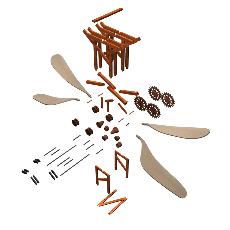 Táto sada obsahuje mechanický model vážky, jedného z mnohých da Vinciho vynálezov.